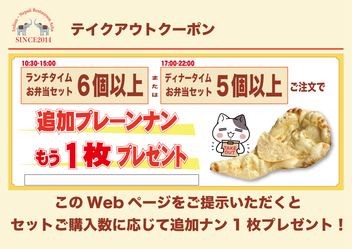 TAKE OUT ー Lunch TIME 10:30−15:00