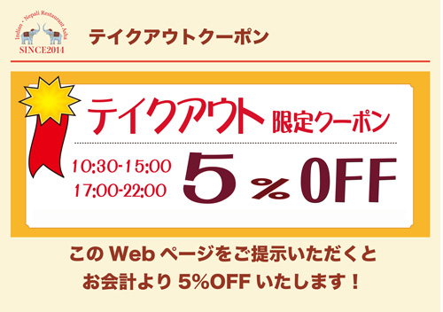 TAKE OUT ー Dinner TIME 17:00−22:00